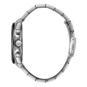 بند استیل مشکی با دوام بالا: بند فلزی مشکی، ظاهری مدرن و سنگین دارد و با قفل کلیپسی بهراحتی باز و بسته میشود.