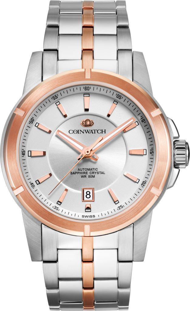 رنگبندی: رنگ بدنه و بند به صورت ترکیبی از نقرهای و طلایی مات است که جلوهای بسیار شیک و کلاسیک به ساعت بخشیده و امکان ست کردن با انواع زیورآلات و لباسها را به آسانی فراهم میکند.